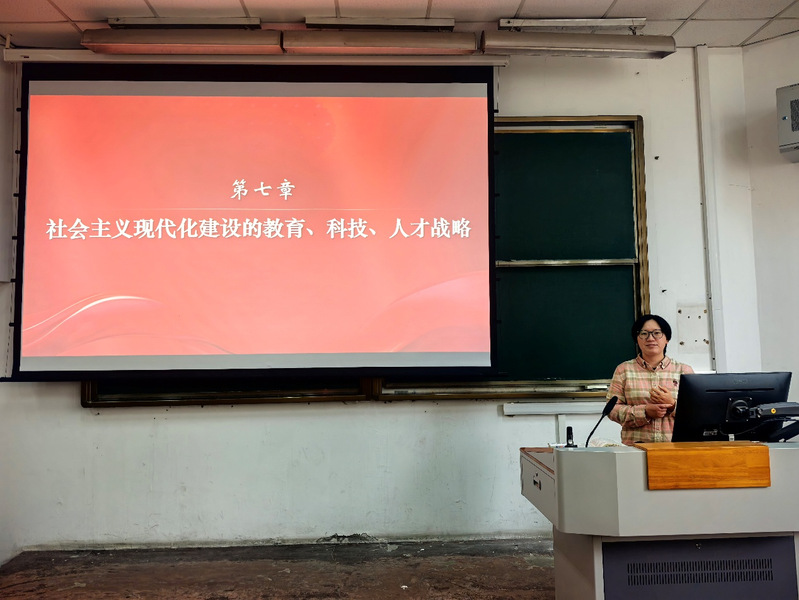 与会教师首先观摩了王小芳老师的公开课。王小芳老师结合《社会主义现代化建设的教育、科技、人才战略》章节,围绕“为什么要坚持教育、科技、人才一体推进”的教学内容,从三者的内在一致性、提升国家创新体系整体效能的必然要求、推进高质量发展的内在要求、强国建设与民族复兴的战略支撑等四个方面进行了系统讲解。王小芳老师采用小组讨论、实践展示、案例教学等方法,从问题出发、以实践入手、以学理贯通,极大调动了学生参与课程的热情,增强了课程的实效性。