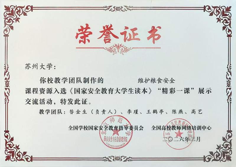 本次“精彩一课”展示交流活动是当前国内学校国家安全教育领域规格最高、影响最广的教学展示活动。活动采用“校级推荐—省级遴选—全国展示”的选拔机制,对教学内容的政治性、教学设计的创新性、教学实施的示范性提出了更高要求。此次我校入选的课程紧扣《国家安全教育大学生读本》教学内容,聚焦粮食安全这一总体国家安全观的重点领域,系统阐释了新时代我国维护粮食安全的科学内涵、面临的风险挑战和维护粮食安全的途径和方法。课程引导学生深刻认识粮食安全的战略意义,树立“粮食安全是国之大者”的责任意识,培养维护粮食安全的使命感和家国情怀。