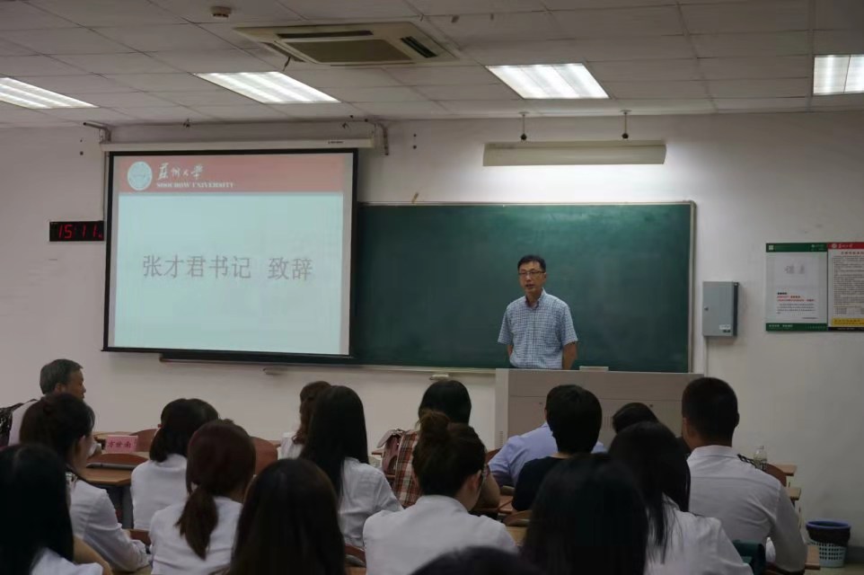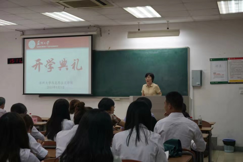 9月9日下午,苏州大学马克思主义学院于独墅湖校区302#3205教室隆重举行2019级研究生开学典礼。马克思主义学院党委书记张才君、院长田芝健教授、副院长许冠亭教授、副院长朱蓉蓉教授、方世南教授、姜建成教授、杨渝玲教授、教学科研办公室主任李文娟老师、研究生辅导员金鑫老师等出席了开学典礼。开学典礼由马克思主义学院组织,研究生党支部、院团委、研究生会承办,由李文娟老师主持。
