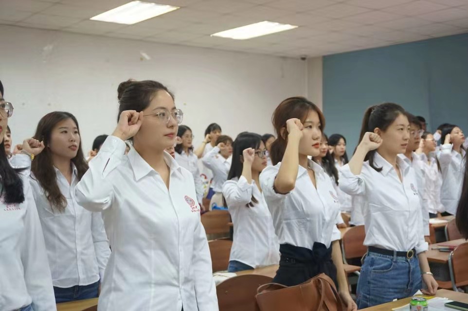 2019级博士研究生毛瑞康带领着在场全体硕博新生共同宣誓: