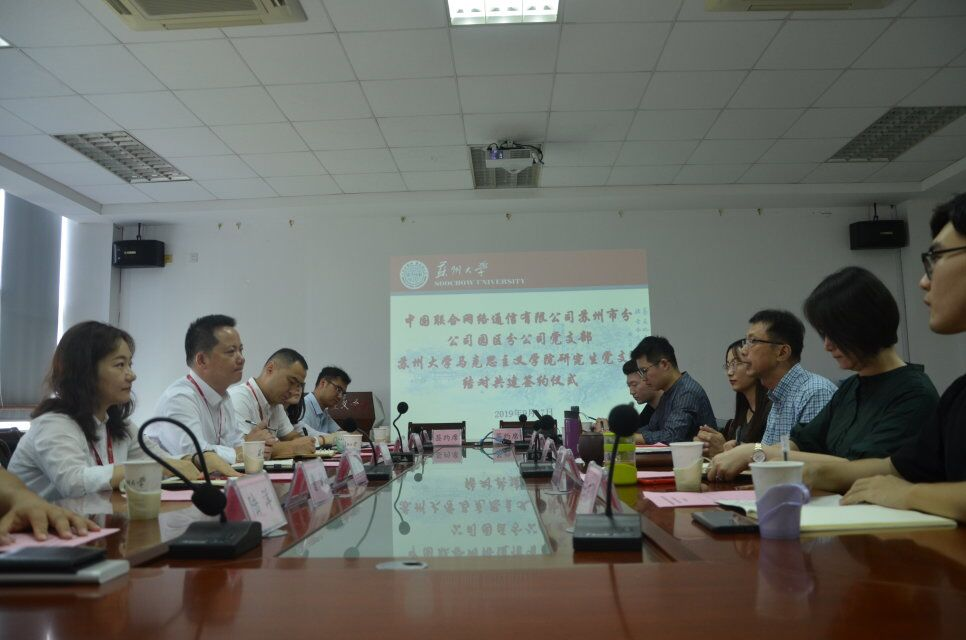 合作共建 携手同行 ——苏州联通园区分公司党支部与苏州大学马克思主义学院研究生党支部结对共建签约仪式暨第一次联席会议圆满举办