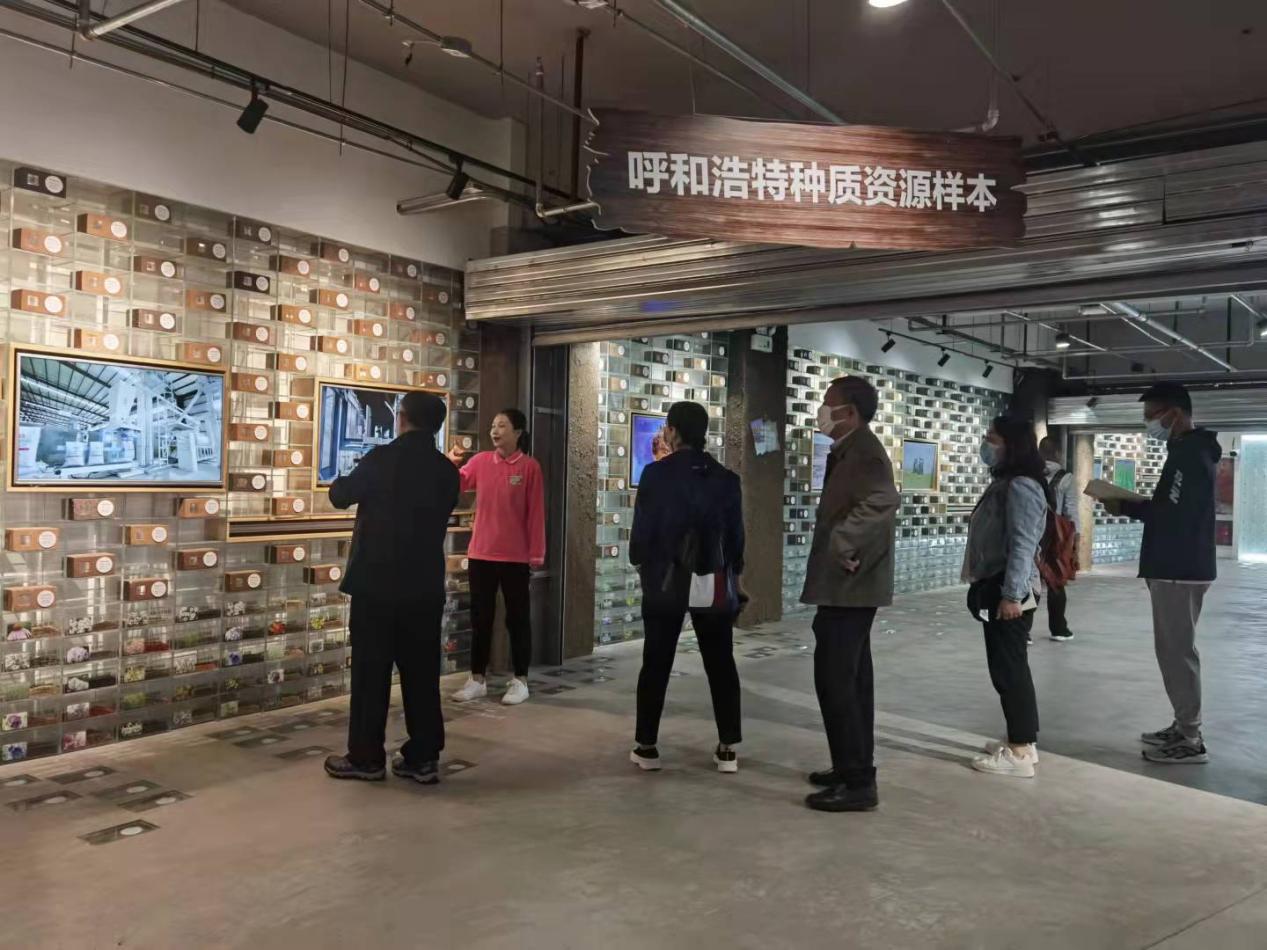 实践团队走进“蒙草・种业中心”,听取了讲解员关于公司的生态绿色发展、科技创新、党建引领等方面的介绍。蒙草是一家以“草”为业的科技型生态企业,以驯化乡土植物、进行生态修复为核心,立足“草、草原、草科技”构建产业生态圈,倡导“师法自然,尊重规律,用原生乡土植物修复生态”,构建北疆生态绿屏障,打造山水林田湖草沙生命共同体,实现生态的可持续发展。
