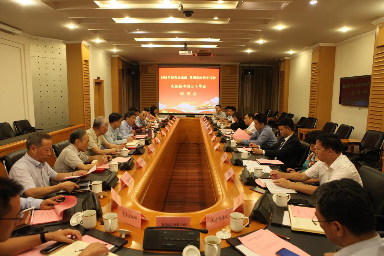 为喜迎新中国成立七十周年,激发爱国情怀和民族自豪感,不忘初心、牢记使命,积极投身新时代中国特色社会主义建设,推动学校教育事业取得新进展,9月29日下午,我校在红楼会议中心召开庆祝新中国成立70周年师生座谈会。