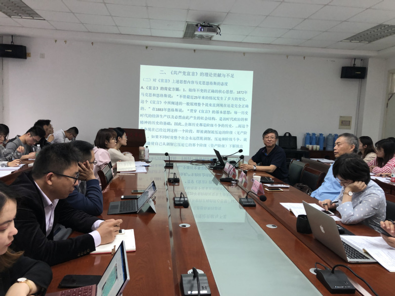 最后,丁堡骏教授围绕《宣言》发展路径及启示进行阐述,他认为,作为党的纲领,《宣言》有其与时俱进的发展路径,党的十九大报告就是这种意义上的对《宣言》的发展;作为马克思主义理论阐述的《宣言》发展路径体现在从《宣言》到《资本论》,再从《资本论》到《资本论》俄国化和中国化的发展。同时,他结合社会热点问题和现象指出了《宣言》带来的启示。他表示,马克思主义是发展着的,必须用发展的观点来对待马克思主义问题,必须要用发展着的马克思主义指导中国特色社会主义,必须要认识到跨越卡夫丁峡谷建设社会主义的意义,在辩证运动中坚持不懈地贯彻科学社会主义的基本原则。他激励在座的青年学生要不忘初心,自觉肩负起使命,在这个时代中发挥自己应有的作用。