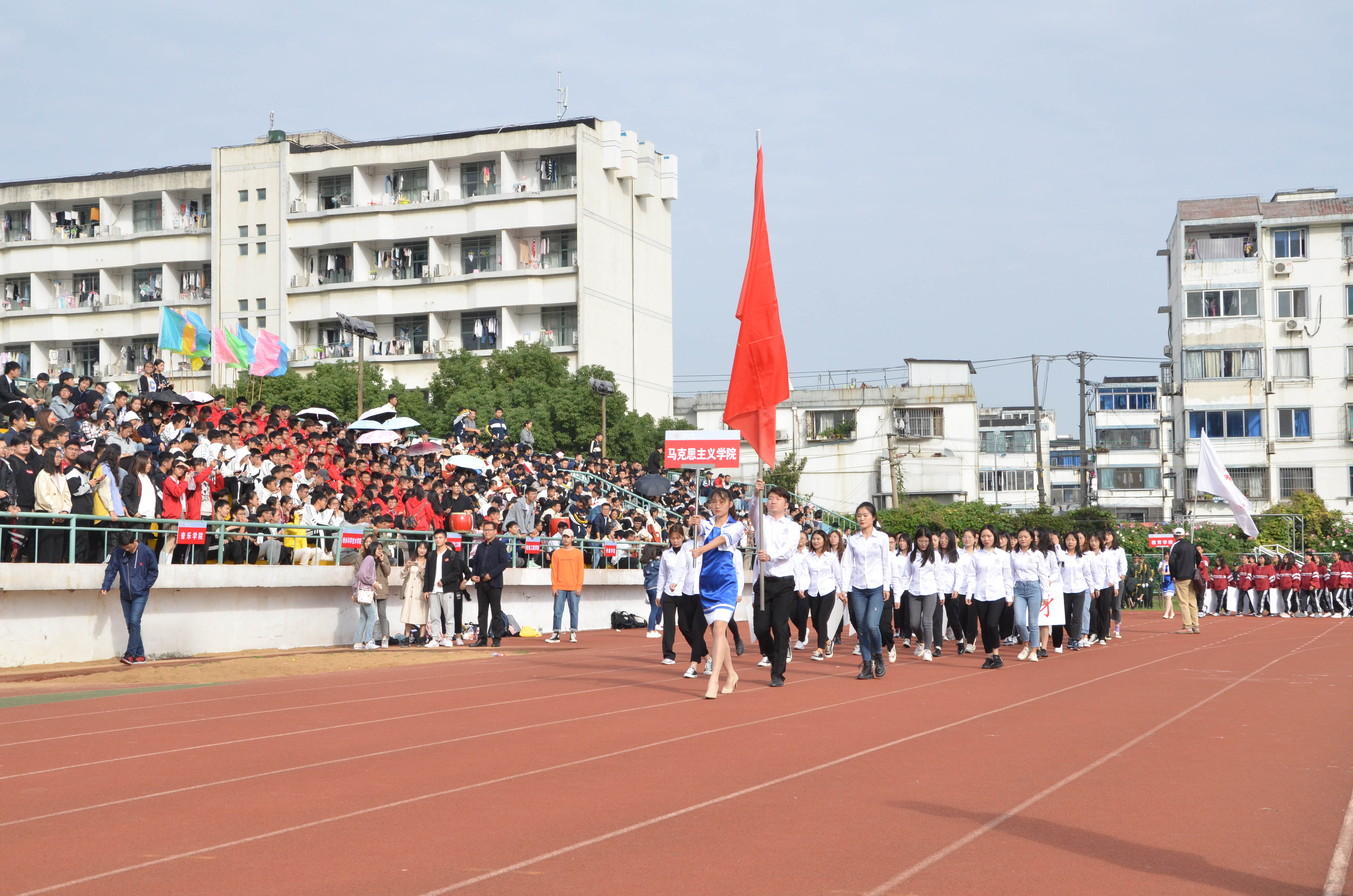10月18日上午八时三十分,运动会在苏州大学东校区运动场隆重开幕,各学院(部)方阵伴随着《运动员进行曲》进入赛场,并在主席台前献上了精彩纷呈的表演。作为全校唯一的研究生代表方阵,马克思主义学院代表队以“明理修身,笃信躬行,善教深研,务实创新,服务益世”为口号,踏着坚定的步伐通过主席台,向在场的全体师生展现了马院学子团结协作,锐意进取的精神。