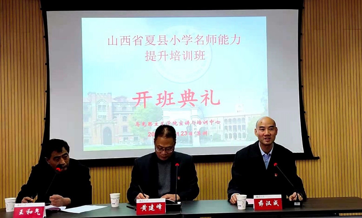 为了更好地贯彻落实习近平总书记在全国教育大会上的重要讲话精神,学习新理念新思想新观点,2020年11月22日至11月27日,苏州大学马克思主义学院顺利承办了山西省夏县小学名师能力提升培训班。11月23日上午,双方领导在苏州大学东教楼516举行开班仪式。