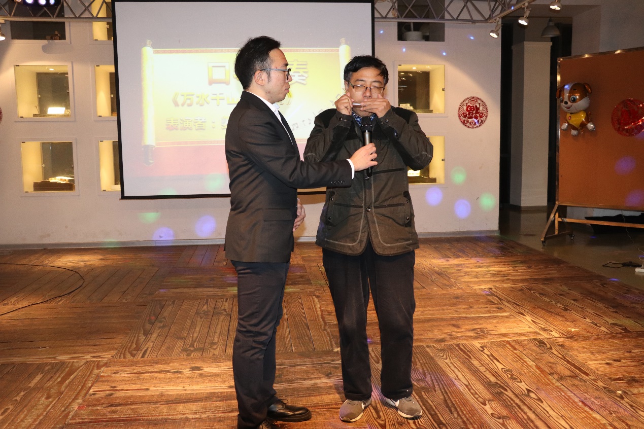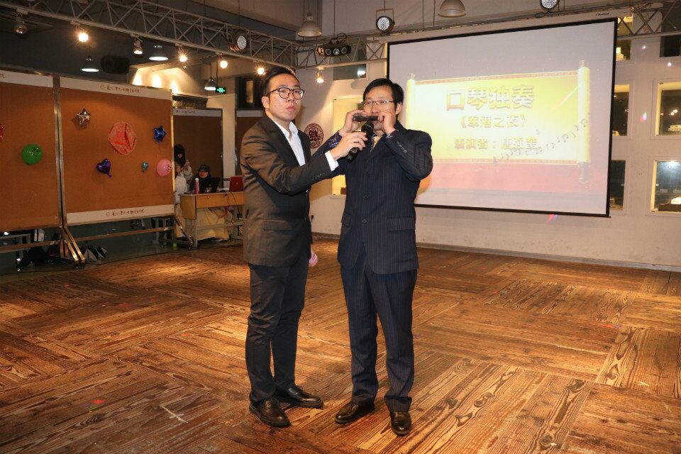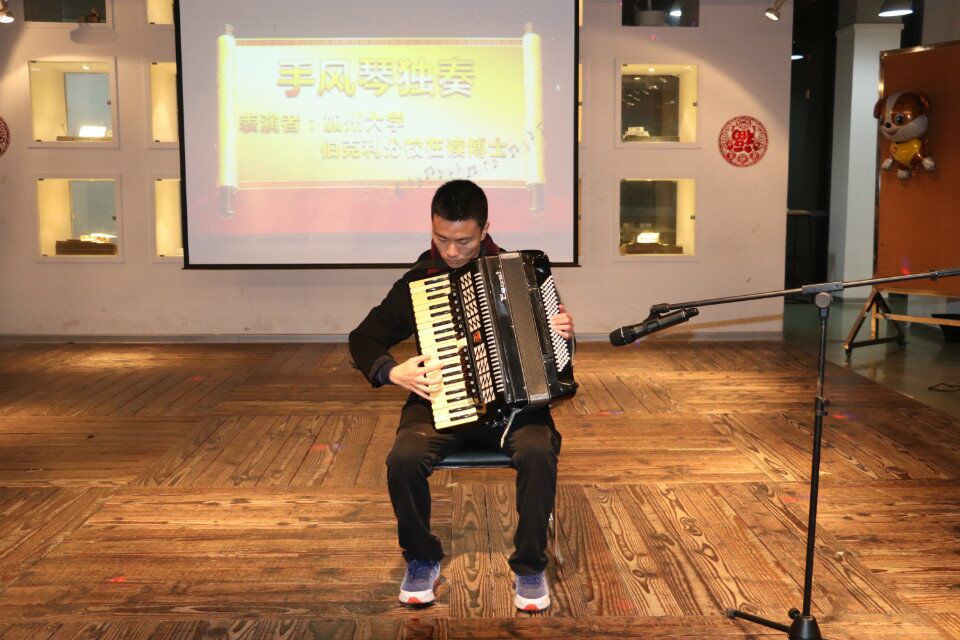 在“时代梦”篇章,硕士生肖小芬演唱了歌曲《走进新时代》,硕士生毛瑞康、李秀红合作相声《党的十九大新说》,谢贵兵、李艳秋两位老师深情朗诵《读中国》引起阵阵掌声,唐强奎老师的口琴独奏《军港之夜》余音绕梁。