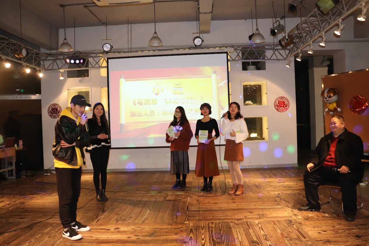 联欢会分为“时代梦”、“青年梦”、“马院梦”三个篇章,融汇了歌曲、舞蹈、相声、小品、乐器演奏、朗诵等精彩节目,同时又穿插了党的十九大知识抢答、你划我猜互动游戏,联欢会高潮迭起,欢声不断。