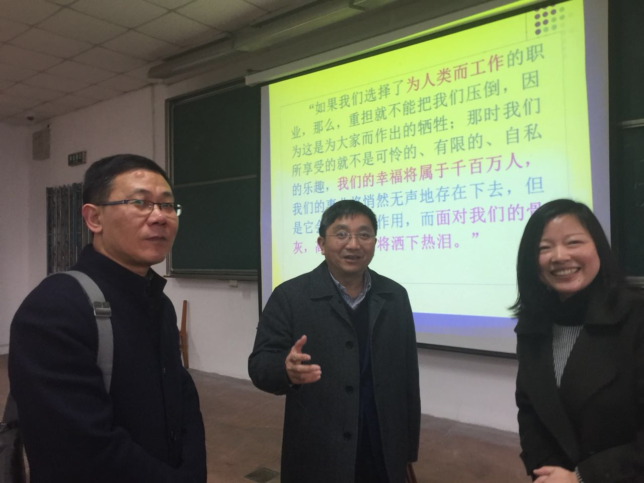 江书记还了解思想政治理论课教学科研、师资补充等情况,关心马克思主义学院如何克服本学期毛泽东思想和中国特色社会主义理论体系概论教材征订遇到的特殊困难。参与听课的马克思主义学院副院长许冠亭教授就此问题向校领导作了汇报:毛泽东思想和中国特色社会主义理论体系概论教材2015版已经停止付印,2018新版教材又暂时尚未出版。马克思主义学院为此认真做好相关工作,动员全体教师克服困难。本学期各门思想政治理论课课程在新版教材没有到来之前,全体教师的备课和教学活动的开展,按照2015版教材的内容并结合教育部思想政治理论课教指委下达的党的十九大精神教学建议进行,认真备课,精心授课,保证教学活动的顺利进行。同时,在新教材未到之前,动员各学院借用2013、2014级以及2015级上学期上课学生们使用过的2015版教材,确保在新教材到达之前人手一册,并在本学期中的新版教材到来后可以自然衔接。