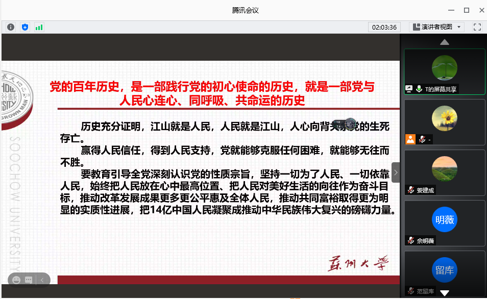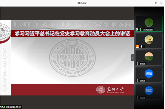 3月1日晚上,马克思主义学院概论党支部举行了学习习近平总书记在党史学习教育动员大会上的重要讲话精神线上主题党日活动。活动由马克思主义学院概论党支部书记罗志勇主持。马克思主义学院院长田芝健教授应邀分享了学习体会。