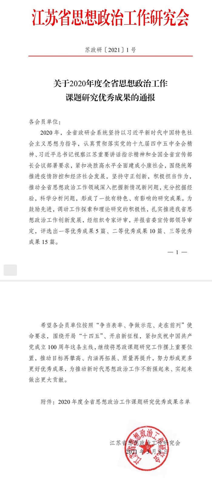 苏州大学马克思主义学院宋德孝教授荣获江苏省思想政治工作课题研究优秀成果一等奖