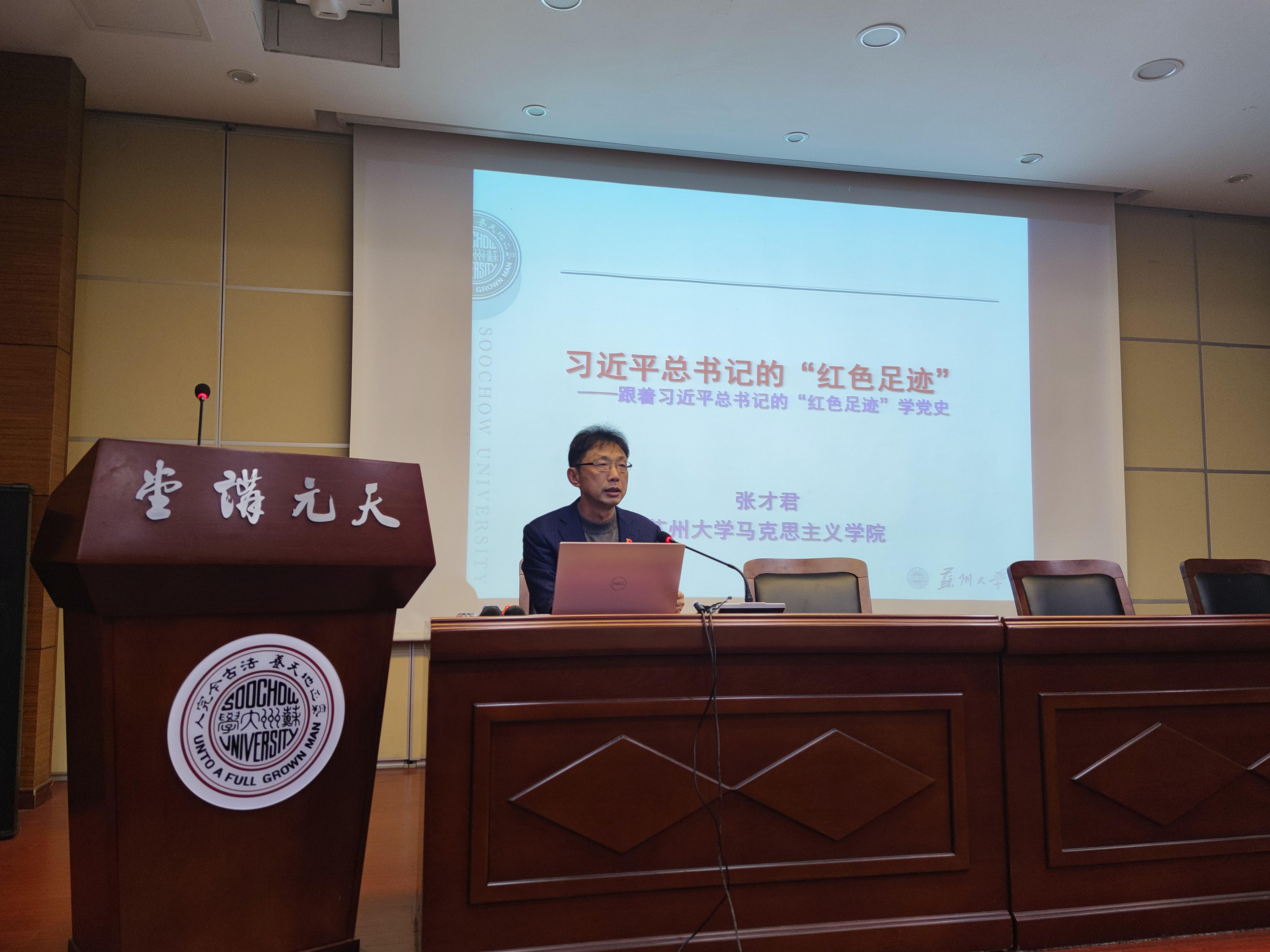 动员大会后,学院党委委员张才君以《跟着习近平总书记的“红色足迹”学党史》为题作主题宣讲报告。他以时间为线索,沿着习近平总书记的10个“红色足迹”,带领大家领悟党史中蕴含的精神,感受百年大党的思想伟力。他强调,党史学习关键在于学用结合:一要坚定理想信念,加强党的自身建设,守初心、担使命,走好新的长征之路;二要坚定中国特色社会主义自信,着力提升党的执政能力;三要知行合一,发扬为民服务孺子牛、创新发展拓荒牛、艰苦奋斗老黄牛的“三牛”精神,在中华民族伟大复兴的征程中作出新贡献。