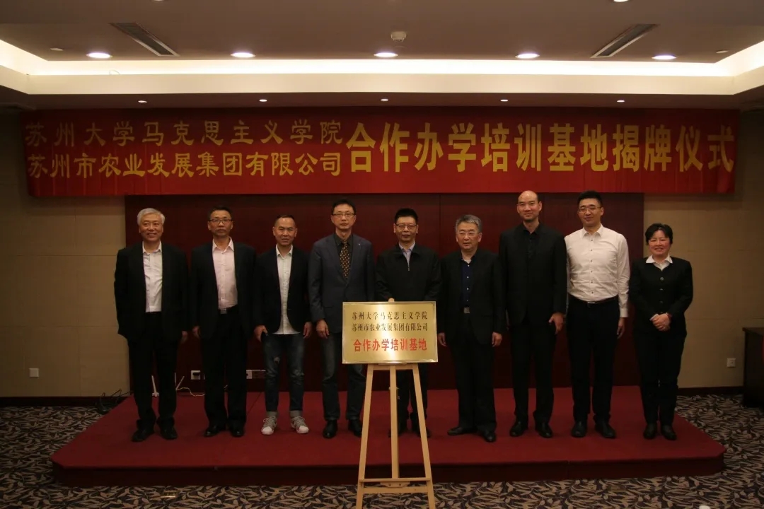 苏州大学马克思主义学院与苏州市农业发展集团有限公司举行“合作办学培训基地”揭牌仪式
