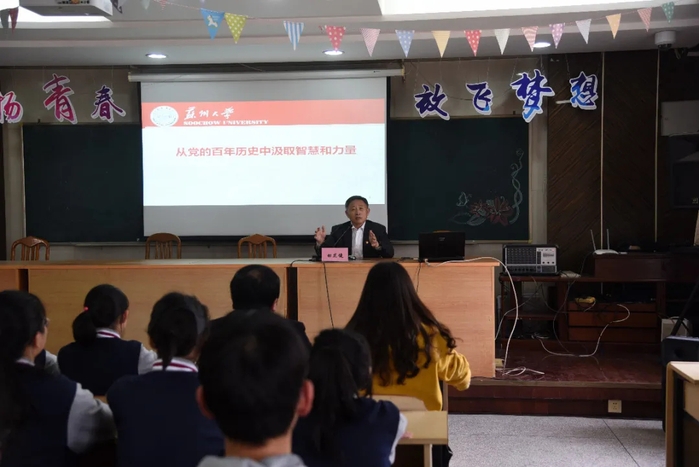 苏州大学马克思主义学院院长田芝健教授到苏州市吴江区运河实验初级中学作《从党的百年历史中汲取智慧和力量》讲座