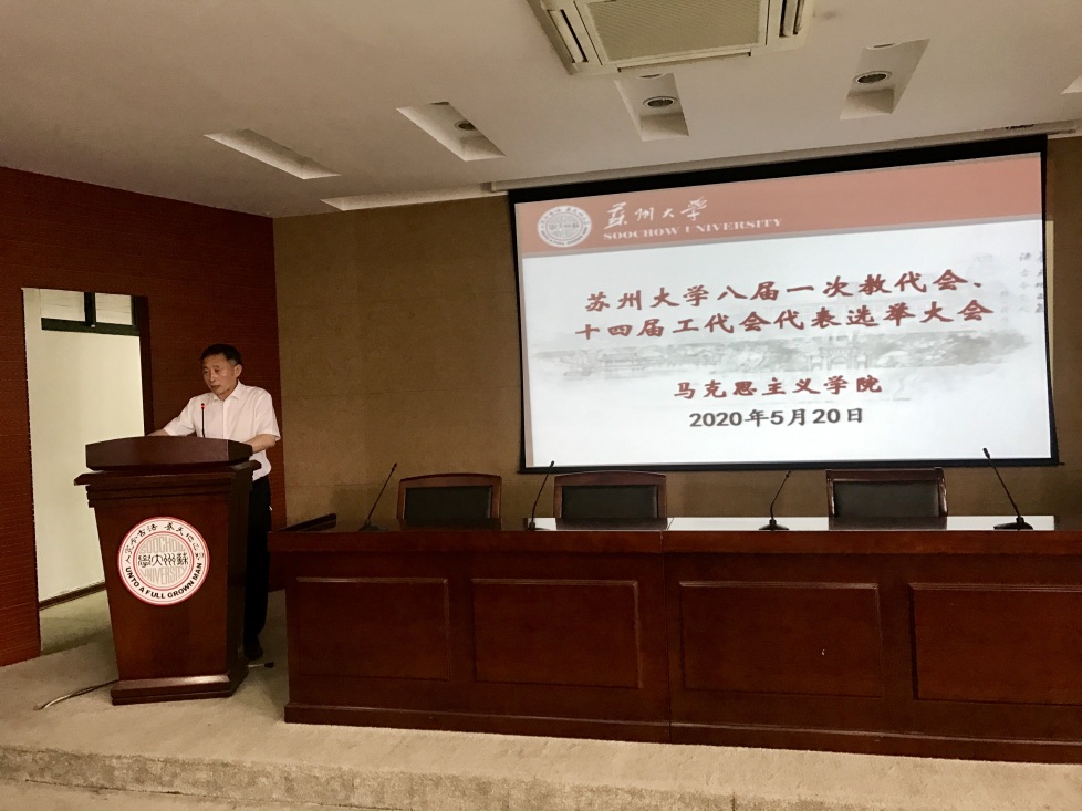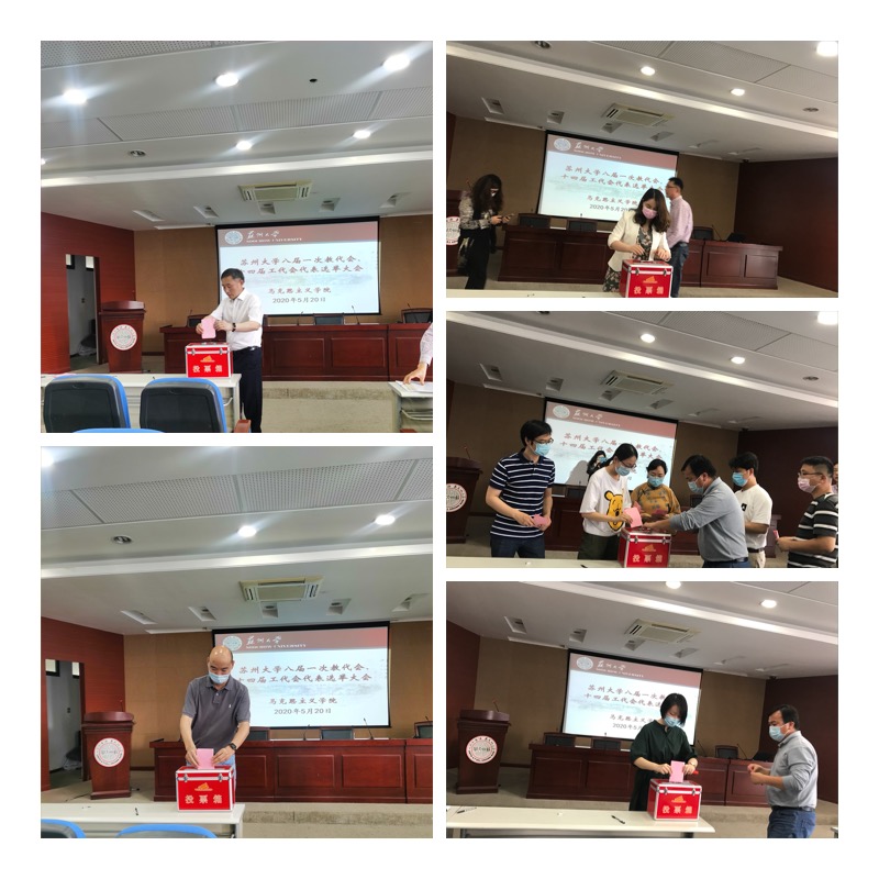 为了进一步推进教职工民主管理,2020年5月20日下午,我院于6403会议室召开了全体教职工大会,举行苏州大学第八届一次教代会、第十四届工代会的代表选举工作。学院全体教职工参加了会议,会议由学院党委书记张才君主持。