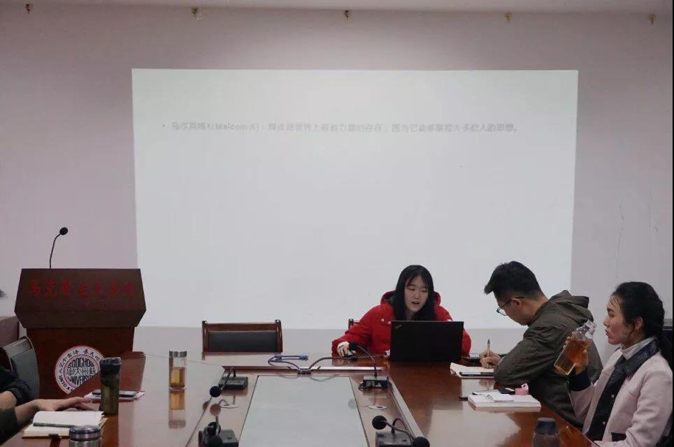 马尔克姆曾说:“媒体是世界上最有力量的存在,因为它能够掌握大多数人的思想。”刘婉婉从中得到启发,结合时事政治交流分享关于“新时代网络意识形态话语权的建构”。刘婉婉指出,近年来,随着我国经济社会快速发展和互联网应用的广泛普及,社会发展多元化趋势日渐凸显,导致思想文化领域的一些问题也逐渐暴露出来,其中网络空间意识形态话语权问题尤其引人关注。做好网络舆论工作必须始终贯穿以人民为中心的发展思想,及时把人民群众创造的经验和面临的实际情况反映出来,丰富人民精神世界,增强人民精神力量。