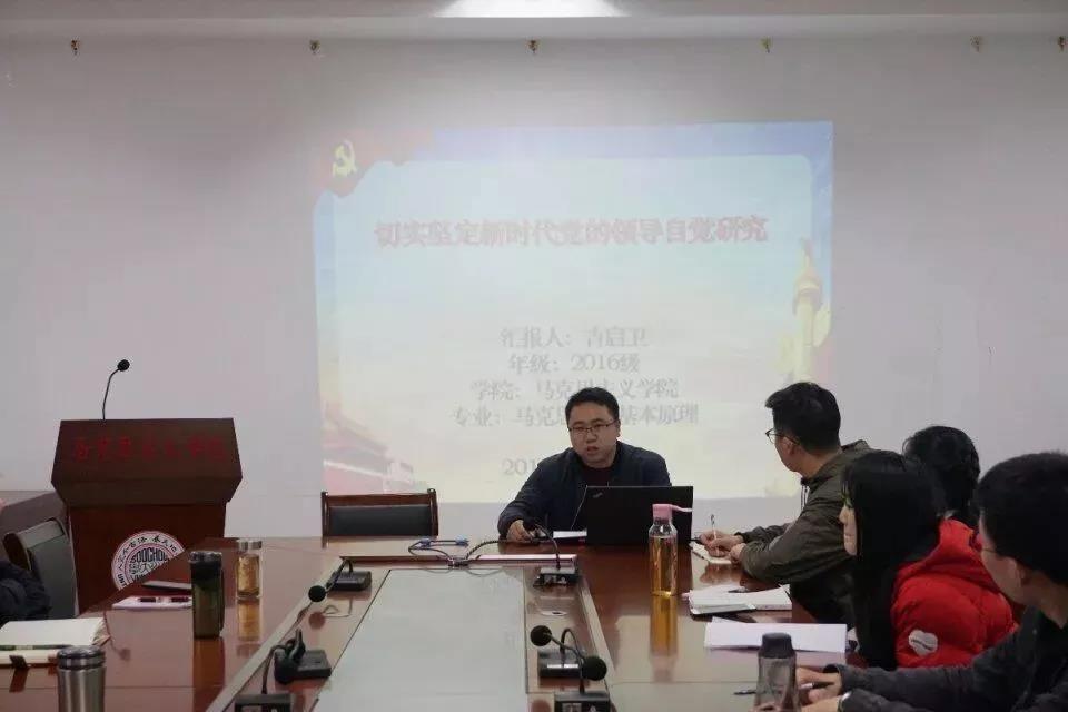 新时代下,我们党要在坚持和发展中国特色社会主义的历史进程中始终成为坚强领导核心,必须进一步锻造新时代党的领导力。吉启卫博士以《切实坚定新时代党的领导自觉研究》为题,从“坚定新时代党的领导自觉的意义”、“新时代党的领导自觉存在的问题”、“新时代党的领导自觉存在问题的原因”以及“坚定新时代党的领导自觉的路径”四个方面强调了我们要充分认识坚定党的领导自觉意义。