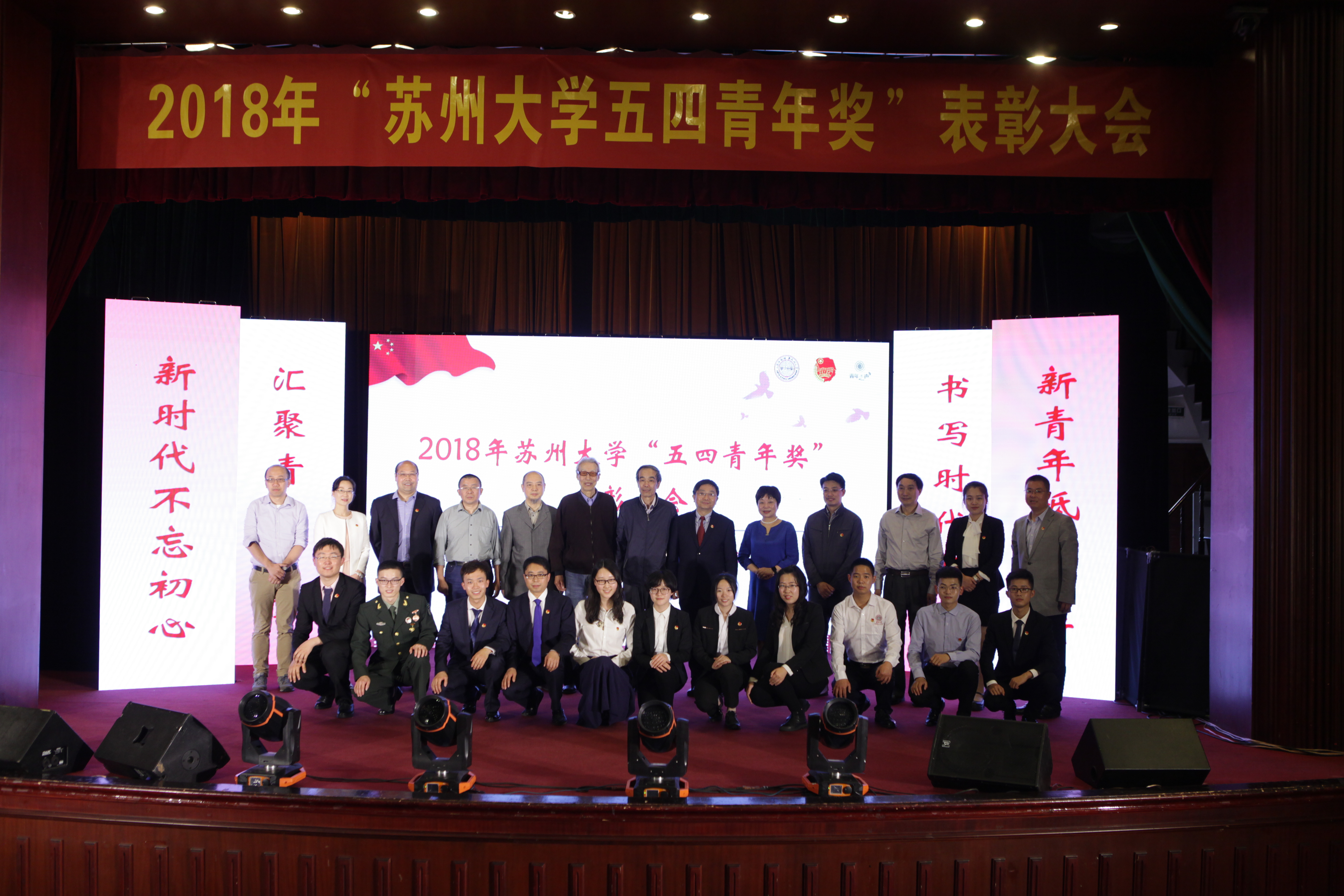 值此五四运动99周年、中国共青团建团96周年之际,也恰逢“苏州大学五四青年奖”开展10周年。十年来,有74个集体和个人获得了苏州大学五四青年奖,549个集体和个人获得了五四青年奖提名奖,在全校团员青年中发挥了示范引领作用。今年3月,我校启动了2018年“苏州大学五四青年奖”评选活动,通过团支部提名、年级提名和学院(部)提名三个阶段的典型选树,最终有112个集体和个人进入校级候选。通过新媒体平台展示、评审委员会初评和复评、评选会现场展示、公示和学校研究等环节,最终有13家集体和个人获得“苏州大学五四青年奖”,7名老师获得“苏州大学五四青年奖·特别感谢奖”。