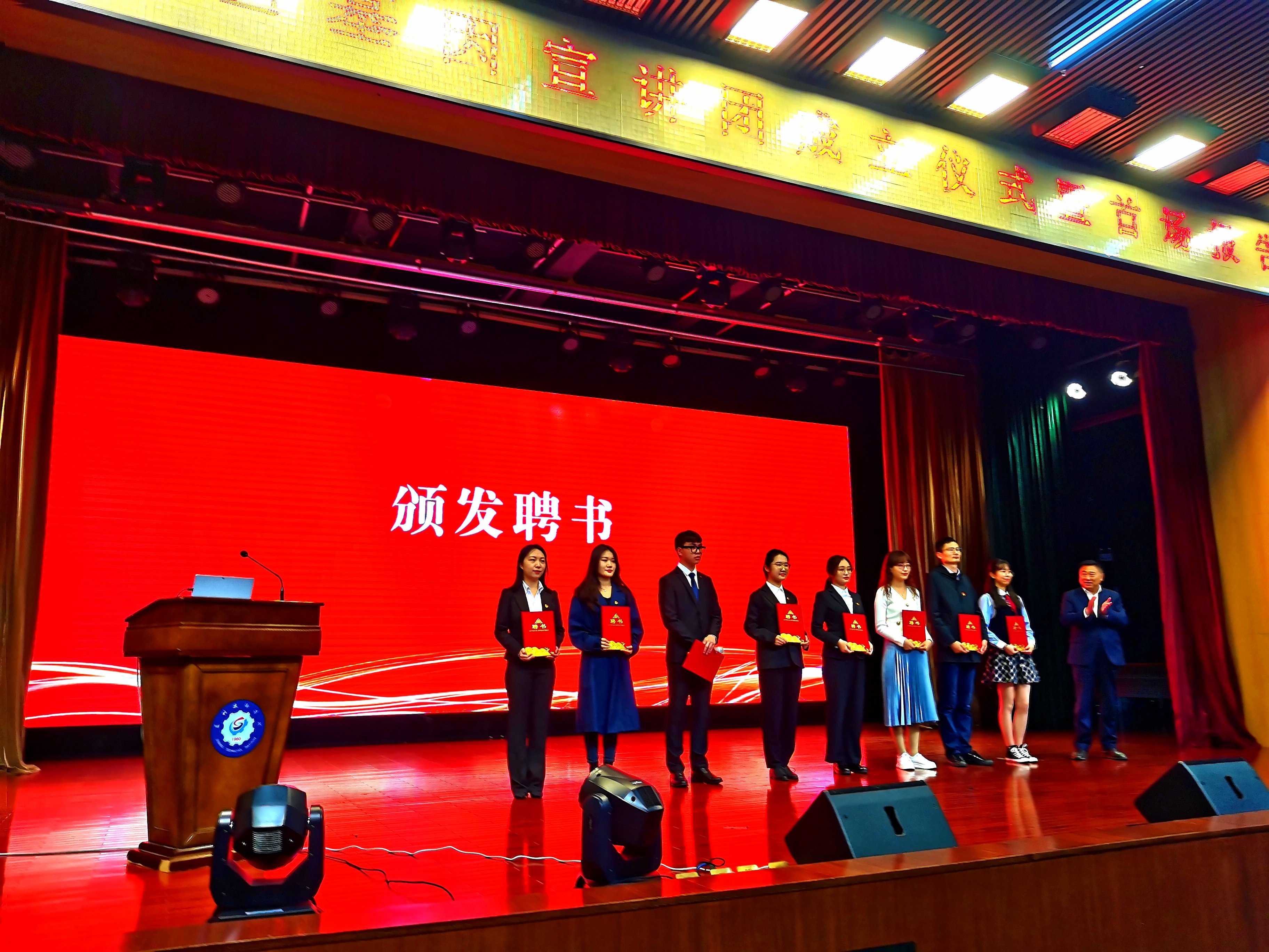 4月27日,苏州市红色基因宣讲团成立仪式暨首场报告会在苏州技师学院会议中心举行,苏州老区开发促进会曹霞富,苏州市老区开发促进会副会长、苏州市红色基因宣讲团团长朱正荣,苏州市老区开发促进会副会长、秘书长钟勤华,姑苏区、工业园区“三会”筹备组人员,市委、市政府相关部门处室负责人及宣讲人员等共同出席了此次活动。苏大马院研究生在院团委书记金鑫的带领下参与此次活动,领取聘书并发表主题宣讲。