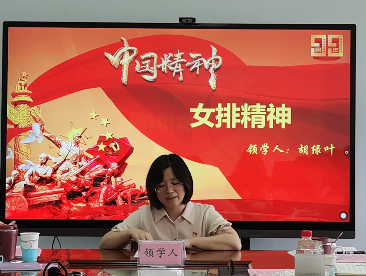 基础党支部书记胡绿叶以“践行女排精神 再创民族辉煌”为主题领学。她指出,女排精神即祖国至上、团结协作、顽强拼搏、永不言败的精神。中国女排的奋斗历程与中华民族伟大复兴的征程相伴而行,几十年形成的女排精神推动中国女排实现了第一次腾飞,也帮助中国女排实现了低谷到再次辉煌的奋起,这也正是中华民族近代以来发展面貌的现实彰显。新时代发扬女排精神,要牢记三点基本要求,即爱国是灵魂,树立家国情怀,彰显个人担当;团结是法宝,正确处理个人与集体的关系,在团结协作中书写人生华章;拼搏是特质,做到永久奋斗,不服输、不放弃。
