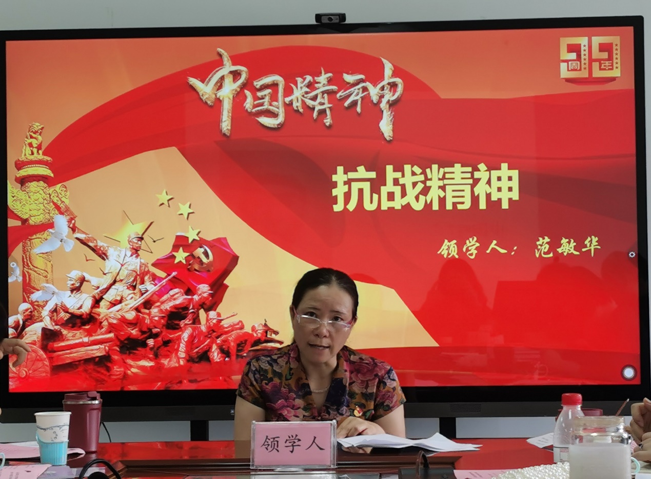 纲要党支部书记范敏华以“学习抗战精神 践行初心使命”为主题领学。她通过史实回顾,为我们阐述了抗战精神在抗战时期的鲜明体现和现实彰显。她指出,在14年艰苦卓绝的抗战进程中,无数杨靖宇这样的铁血战士用不畏强暴的勇气、革命必胜的信念、杀身成仁的决心,捍卫国家主权、维护民族尊严,书写了一部可歌可泣的抗日英雄史诗,铸就了彪炳史册的伟大“抗战精神”。这是中国共产党精神谱系中的一个鲜明坐标,承载着历史记忆和思想感情,砥砺着理想信仰和使命担当,无论过去、现在还是将来,都是弥足珍贵的精神财富。新时代,我们要充分弘扬抗战精神,即“天下兴亡、匹夫有责的爱国情怀,视死如归、宁死不屈的民族气节,不畏强暴、血战到底的英雄气概,百折不挠、坚忍不拔的必胜信念”。