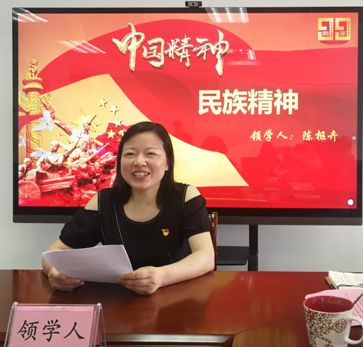概论党支部副书记陈枢卉做了“弘扬民族精神 践行初心使命”的主题领学。她系统阐述了民族精神和中华民族精神的基本内涵,并指出民族精神是一个民族赖以生存和发展的精神支撑,是一个民族生命力、创造力和凝聚力的集中体现。中华民族在漫长的社会历史发展进程中,培育和形成的伟大的中华民族精神,是中华文化最本质、最集中的体现,是中华民族赖以生存和发展的精神纽带、支撑和动力。她从民族精神的时代性和开放性两方面具体论述了民族精神的实践和理论价值,以及新时代的重要启示意义,并指出新时代要充分弘扬民族精神,以科学、自信、积极的姿态不断助力民族复兴。