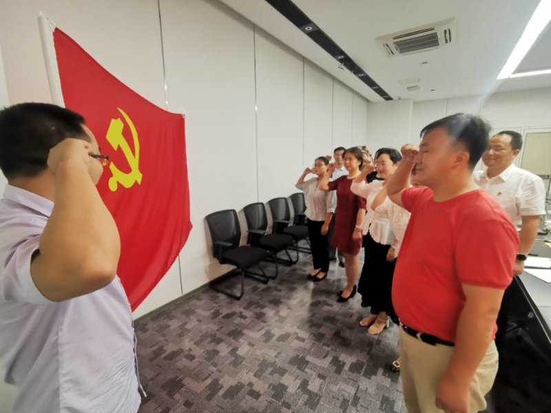 10:20,在同程大厦会议室,靳书记首先主持了全体党员重温入党誓词仪式,由概论党支部书记罗志勇领誓。在庄严而铿锵有力的宣誓中,与会党员再次重温了中国共产党的性质和宗旨,领悟了作为一名党员的初心和使命。随后,同程集团第七党支部和吴中区临湖镇东吴村党支部举行了党建结对共建签约仪式,大家表示祝贺。
