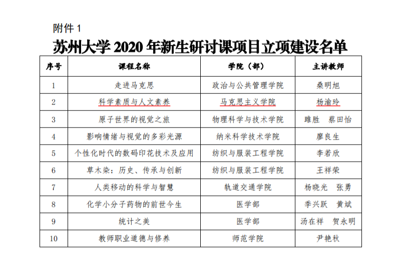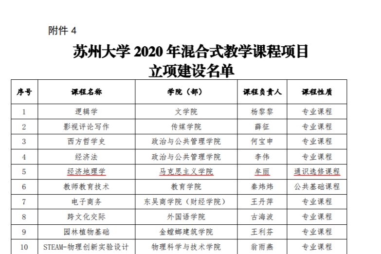 7月3日,苏州大学公布了“苏大课程2020-3I工程”立项建设名单。我院杨渝玲老师的《科学素质与人文素质》、牟丽老师的《经济地理学》分别获批苏州大学2020年新生研讨课项目和混合式教学课程项目立项建设,这是学院教学改革工作取得的新进展。