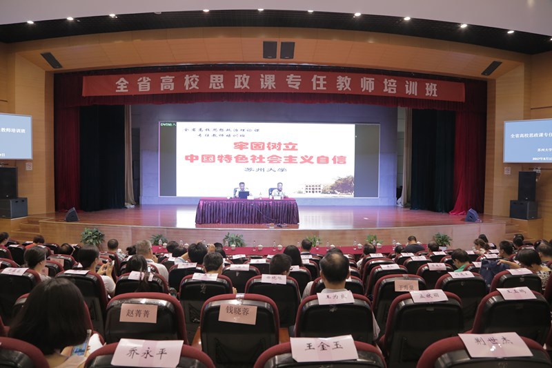 2017年8月17日下午,根据全省高校思想政治理论课专任教师培训的课程安排,苏州大学马克思主义学院田芝健教授做了“牢固树立中国特色社会主义自信”(道路、理论、制度、文化)专题报告。报告由班长南京大学马克思主义学院李洪波教授主持。