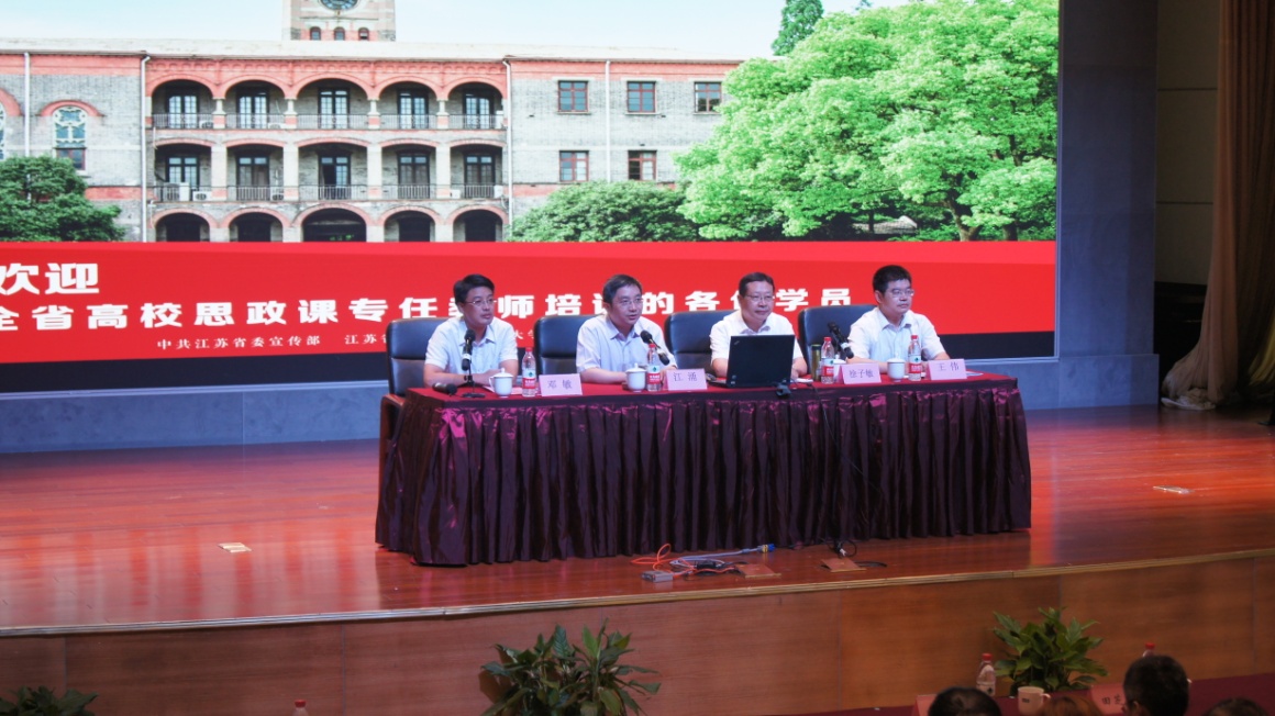 为学习贯彻全国全省高校思想政治工作会议精神,全面落实中共中央国务院《关于加强和改进新形势下高校思想政治工作的意见》和省委省政府的实施意见,8月21日下午,由省委宣传部、省教育厅主办的全省高校思想政治理论课专任教师全员集中培训班苏州大学培训点举行开班典礼。江苏省教育厅工委副书记徐子敏,我校党委书记江涌,党委副书记邓敏,江苏省教育厅社政处王伟处长,我校党委宣传部部长、新闻中心主任陈晓强,马克思主义学院院长田芝健,党委书记张才君等出席了开班仪式。来自全省各高校的268位思想政治理论课专任教师参加了开班仪式。仪式由邓敏副书记主持。