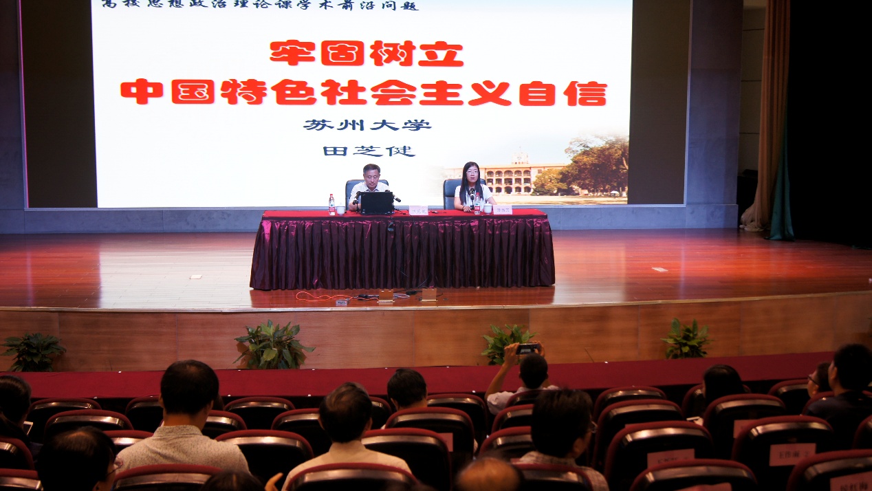 8月24日上午,苏州大学马克思主义学院院长、博士生导师田芝健教授应邀为全省高校思想政治理论课专任教师培训苏州大学培训点第二批学员以“牢固树立中国特色社会主义自信”为题作专题报告,回应了理论界高度关注的重大问题。报告会由河海大学马克思主义学院教师、第二期第六组组长孙秀芳教授主持。