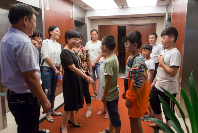 又是一年盛夏时分,经该行行长室及党委会研究决定,诚挚邀请沂蒙山区师生代表来到苏州,希望让孩子们走出大山,感受改革开放以来的现代化城市建设。中国银行苏州工业园区支行党委书记顾美华同志,一见到沂蒙师生代表便热情上前欢迎,拉着孩子们的手亲切问询他们的近况。