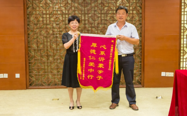 同年7月,该行在党委书记顾美华同志的带领下,积极响应习近平总书记关于“扶贫先扶智”的重要指示,贯彻落实总行“担当社会责任 做最好的银行”的战略部署,发起“爱心助学”沂蒙行活动,聚焦大山深处的兰陵县下村乡西河小学。