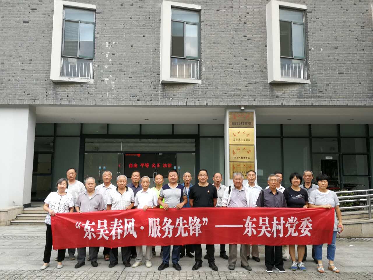 9月8日,由苏州大学马克思主义学院、中共东吴村委员会、江苏省中国特色社会主义理论体系研究中心苏州大学基地主办,东吴村忠孝文化与村治研究协会、苏州大学马克思主义政党与国家治理研究中心、苏州大学社会主义协商民主与基层治理研究中心、苏州大学马克思主义学院中国特色社会主义理论体系研究会、苏州大学马克思主义学院科协理事会承办的“忠孝文化与立德树人”交流研讨会在苏州大学召开。东吴村党委书记、东吴村忠孝文化与村治研究协会会长陈金祥,东吴村党委组织委员黄琴、党委委员金德元,第一支部组织委员朱仁林,第二支部组织委员陈福才,第三支部委员钱孝珍,第四支部组织委员李锦荣,第五支部委员朱晋元,东吴村忠孝文化与村治研究会副秘书长沈家华,协会会员、吴中好人盛福寿,协会会员金孟健、沈友元、陈顺娣、金文高、蒯文良、薛根寿、朱文荣、朱恒元、金孟康、李寿生,苏州大学马克思主义学院院长田芝健教授,院党委书记张才君教授,学院机关党支部书记李文娟,思想道德修养与法律基础教研部主任顾红松,苏州大学马克思主义政党与国家治理研究中心副主任、马克思主义学院干部学院办公室主任吉启卫等参加交流研讨。会议由吉启卫同志主持。