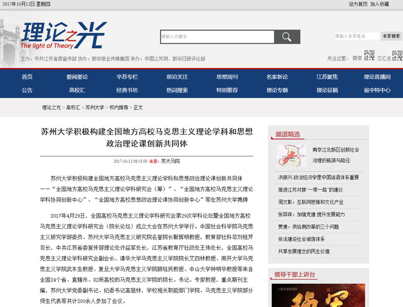 苏州大学积极构建全国地方高校马克思主义理论学科和思想政治理论课创新共同体——“全国地方高校马克思主义理论学科研究会(筹)”、“全国地方高校马克思主义理论学科协同创新中心”、“全国地方高校思想政治理论课协同创新中心”等在苏州大学揭牌