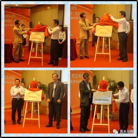 会议期间,全国高校马克思主义理论学科研究会副会长、清华大学马克思主义学院院长艾四林教授和全国高校马克思主义理论学科研究会副会长、南开大学马克思主义学院武东生教授共同为“全国地方高校马克思主义理论学科研究会(筹)”、“全国地方高校马克思主义理论学科协同创新中心”揭牌;全国高校马克思主义理论学科研究会副会长、中山大学钟明华教授和教育部长江学者特聘教授、南京师范大学人文社会科学研究院院长王永贵教授共同为“全国地方高校思想政治理论课协同创新中心”和“苏州大学马克思主义学院马克思主义创新理论与创新创业实践研究中心”揭牌。