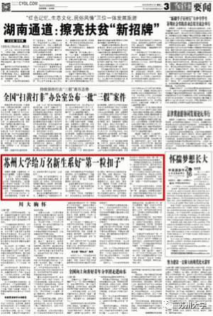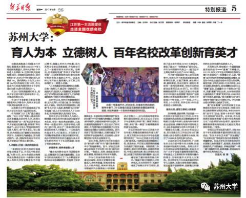 在此,我们特地节选了五年来在国家和省市级主要媒体中的20条报道,按照时间顺序,以倒序的方式,为您展现出媒体视角中的苏大这五年。