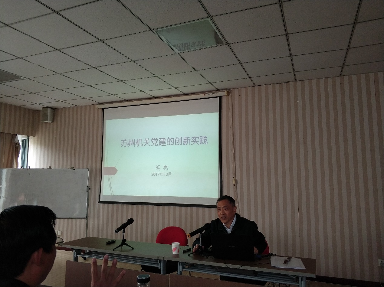 据悉,培训期间干部学院邀请校内外知名专家学者讲授《学习贯彻党的十九大精神》《苏州机关党建创新》《如何做优秀机关党务干部》《苏州城市发展与城市精神》等理论课程,带领培训班学员到太仓市委市级机关工委交流学习,考察昆山市机关服务品牌建设党建示范点——昆山市国税局,相城区党建示范点——区交运局,考察昆山市改革开放成果展,考察苏州市轨道交通集团有限公司运营分公司党建创新等,进一步拓宽了学员的机关党建理念思路,达到了培训目标。