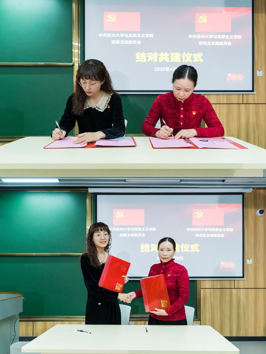 为促进优势互补、能量互释,2021年4月6日,苏州大学马克思主义学院纲要党支部和研究生党支部在苏州大学天赐庄校区博远楼智慧教室举行了结对共建仪式。苏州大学马克思主义学院党委书记陈建军、党委副书记、院长田芝健、副院长朱蓉蓉、副院长茆汉成,纲要党支部党员和教研室教师,研究生党支部党员和研究生代表共30余人参加活动。