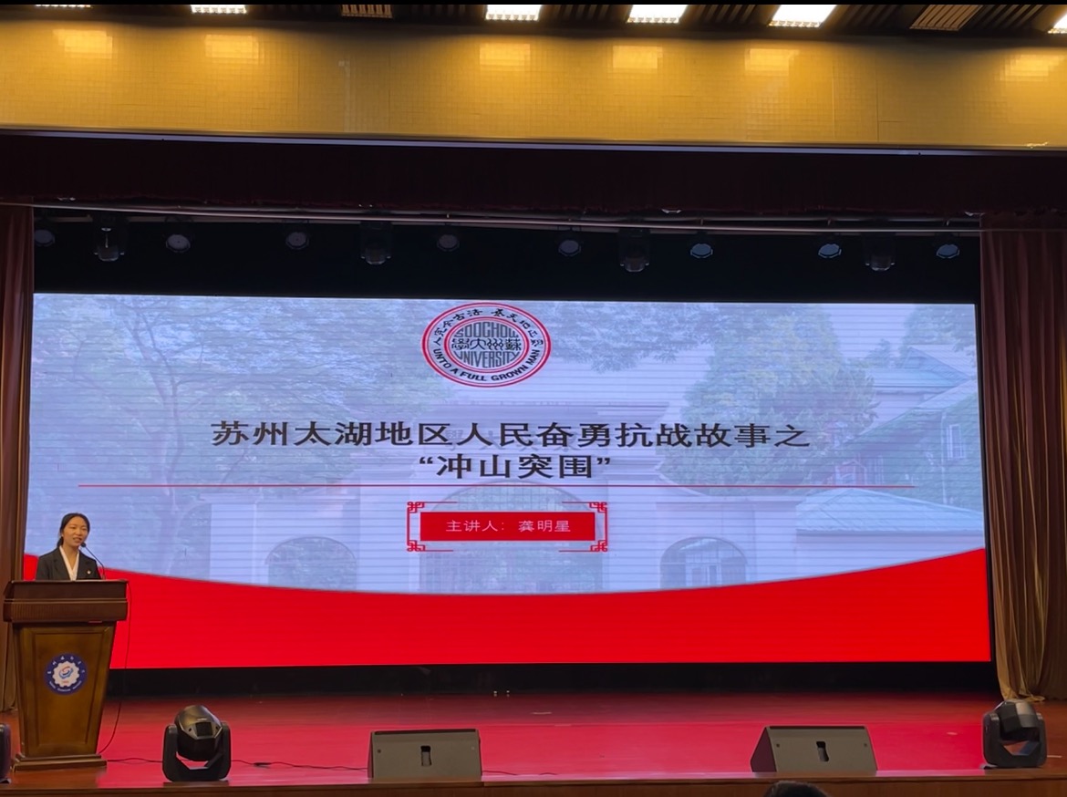 张雪薇以《传承红色基因,不忘来时路—苏州革命红色起点》为题,围绕支部成立的前期准备、支部成立时遇到的困难、支部成立后为革命做出的贡献三条线索,讲述了中共苏州独立支部成立初期的故事。