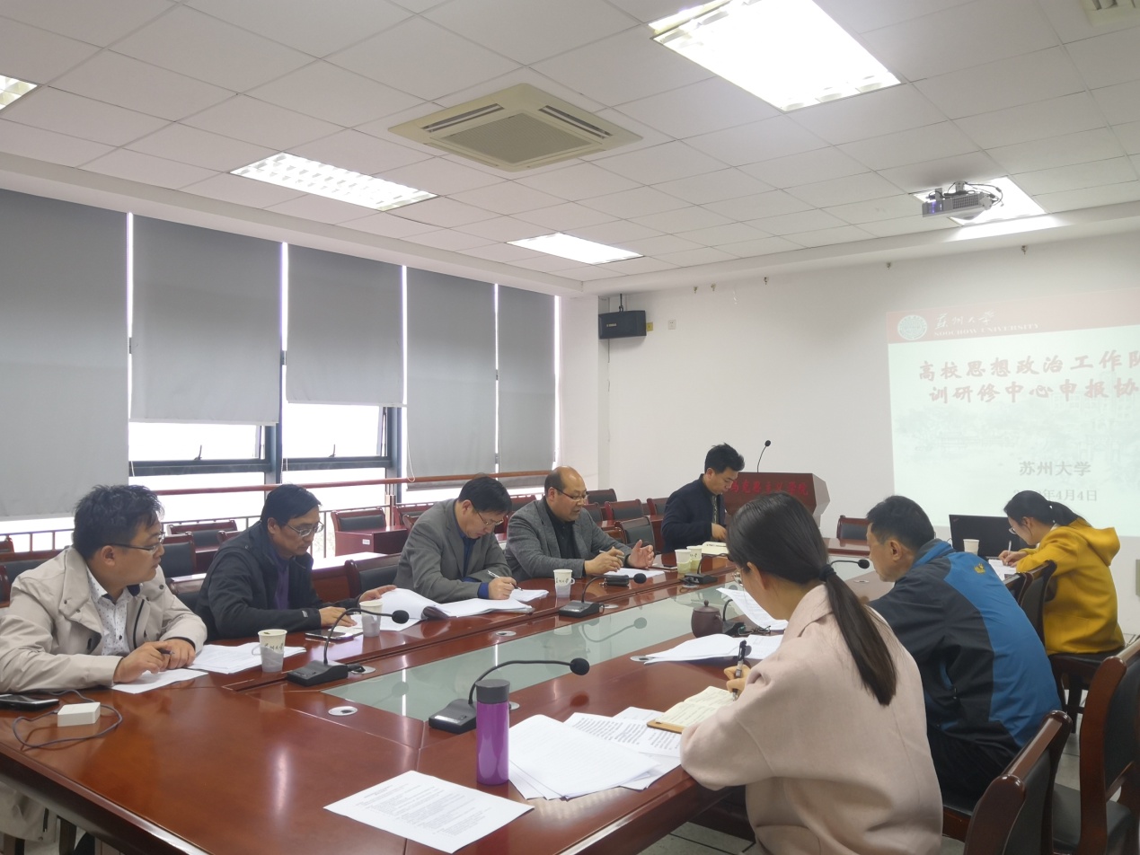2019年4月4日下午,苏州大学党委常委、副校长刘标来到苏州大学独墅湖校区606幢马克思主义学院6418会议室,参加了我校申报高校思想政治工作队伍培训研修中心协调会并指导工作。参加本次申报工作协调会的有苏州大学学生工作部(处)的孙庆民部长(处长)、潘爱华副部长(副处长)、思想政治教育科主持工作的李琳琳副科长、大学生心理健康教育研究中心王清主任、继续教育处(继续教育学院)王建凯副处长(副院长),以及马克思主义学院党委书记张才君、研究生辅导员金鑫老师等。