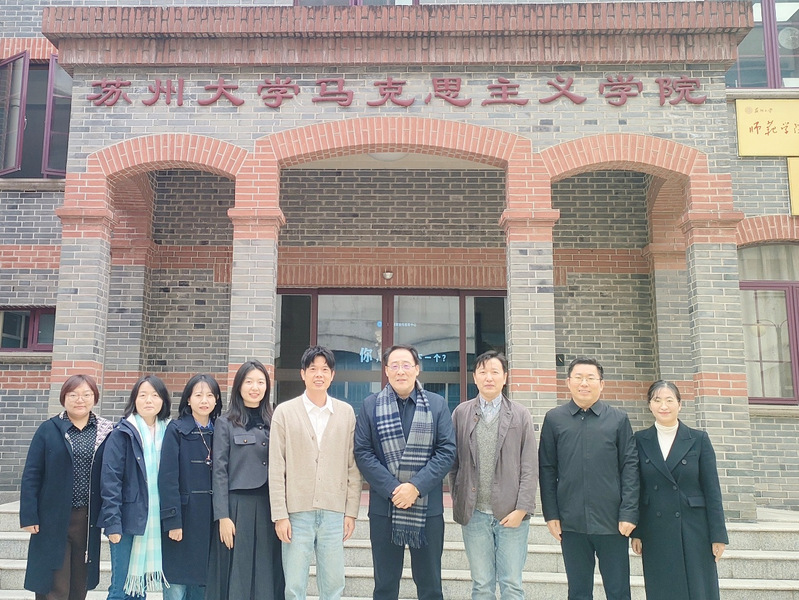 为深化马克思主义理论学科建设经验互鉴,探索思想政治理论课教学创新路径,12月5日,广东金融学院马克思主义学院副院长张春华、中国近现代史纲要教研室主任马炳涛、研究生思想政治理论课教研室主任陈惠扬、教学督导李伟玲、办公室负责人阎娟、教学秘书蔡沐慈一行来苏大马院调研交流,我院院长孙建华、院长助理孔川、中国近现代史纲要教研室主任胡绿叶、硕士研究生思政课教研室副主任王慧莹等参加活动。双方围绕本科教育教学整改、思政课质量提升等核心议题展开深入交流。