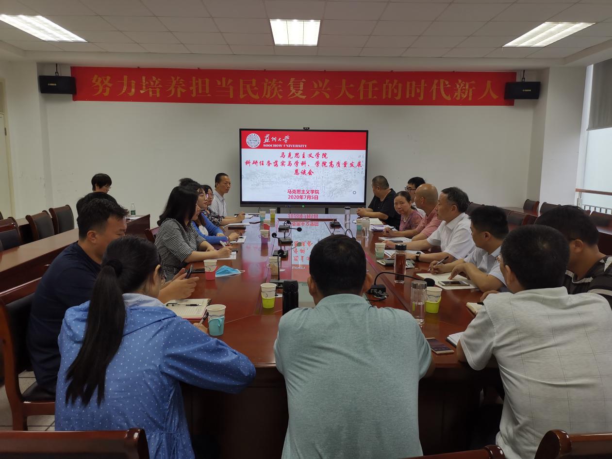 7月5日上午,学院召开科研任务落实与学科、学院高质量发展恳谈会。田芝健院长主持会议并与有关教研室就科研任务落实及推动教学改革、科研创新、教研室建设、师资队伍建设等进行讨论协商,布置了思政课教改、学科建设和学院高质量发展思考题。茆汉成副院长、院教学科研办公室李文娟主任,以及各教研室主任、副主任、支部书记参加了会议。