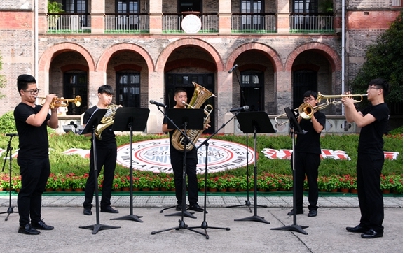 典礼前,音乐学院铜管乐团演奏的《茉莉花》流畅婉转,生动秀美,同学们沉醉于苏大的古朴之美。动感的舞蹈和歌曲《卡路里》洋溢着新时代苏大学子的热情活力。古典与现代的完美融合,诠释了苏大人的创新与奋进。