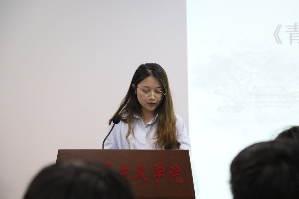 第四组成员代表徐亚宁带领大家欣赏原文后从影响马克思思想的因素、青年马克思职业选择的方向原则、马克思眼中我们应该怎么样选择职业以及《青年在选择职业时的考虑》的当代价值四个方面解读了文章。她表示我们提倡的是将理想和现实、精神和物质统一起来,将个人利益和集体利益结合起来,把个人理想融入全体人民的共同理想当中,把个人的奋斗融入到为祖国社会主义现代化建设事业的奋斗当中。