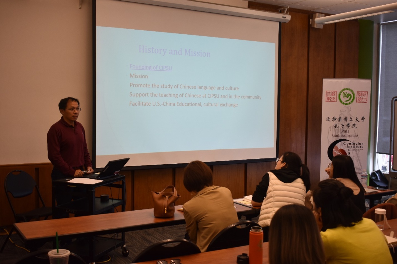 美国太平洋时间2017年9月8日下午,美国波特兰州立大学孔子学院中方院长、苏州大学马克思主义学院博士生张健为该孔院40余名教师做如何跨文化教学的专题入职讲座。