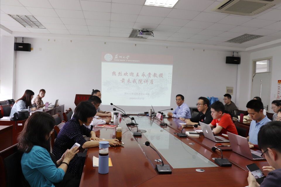 5月17日上午,南京师范大学马克思主义学院二级教授,博士生导师,苏州大学讲座教授,教育部“长江学者”王永贵教授应邀于苏州大学独墅湖校区606号楼6418会议室作主题为“新时代意识形态建设的创新逻辑”的专题讲座。苏州大学马克思主义学院教师,苏州服务外包职业学院教师代表和苏大马克思主义理论学科硕、博士研究生参加了本次讲座。讲座由马克思主义学院院长田芝健教授主持。