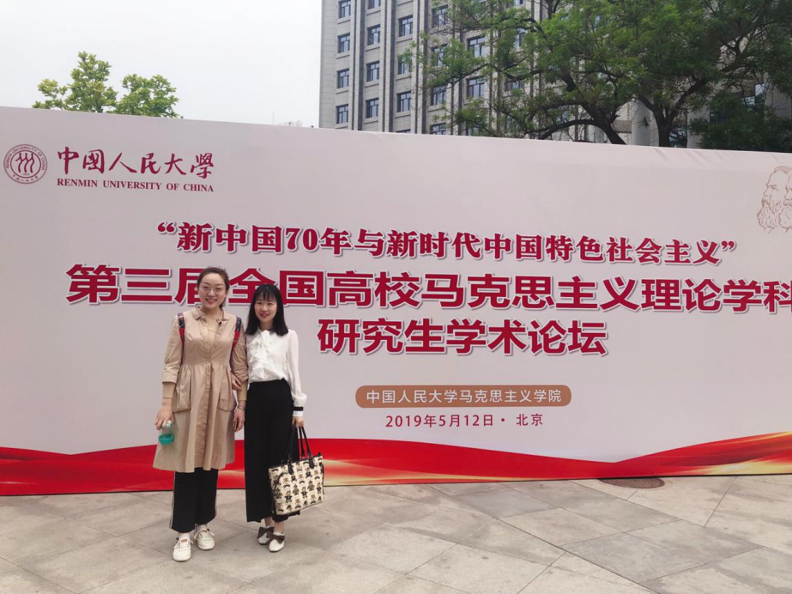本次全国高校马克思主义理论学科研究生学术论坛旨在进一步深入贯彻落实党的十九大和全国教育大会、学校思想政治理论课教师座谈会等重要会议精神,提升马克思主义理论研究的学术水平,进一步推动马克思主义理论学科的改革与发展。在短短一天的交流学习中,我院博士研究生于佳、周心欣同学均表示受益匪浅,并对此次研讨会主办方中国人民大学马克思主义学院的师生指导和会务服务表示感谢。她们不仅展现了苏大马院青年马克思主义者的学术精神,也增强了与各高校马克思主义理论学科研究生的联系和交流,作为未来的思想政治理论课教师、马克思主义理论传播者,要以马克思主义理论为指导,坚定正确的政治方向,在实现中华民族伟大复兴中国梦的征程中贡献自己的智慧和力量。