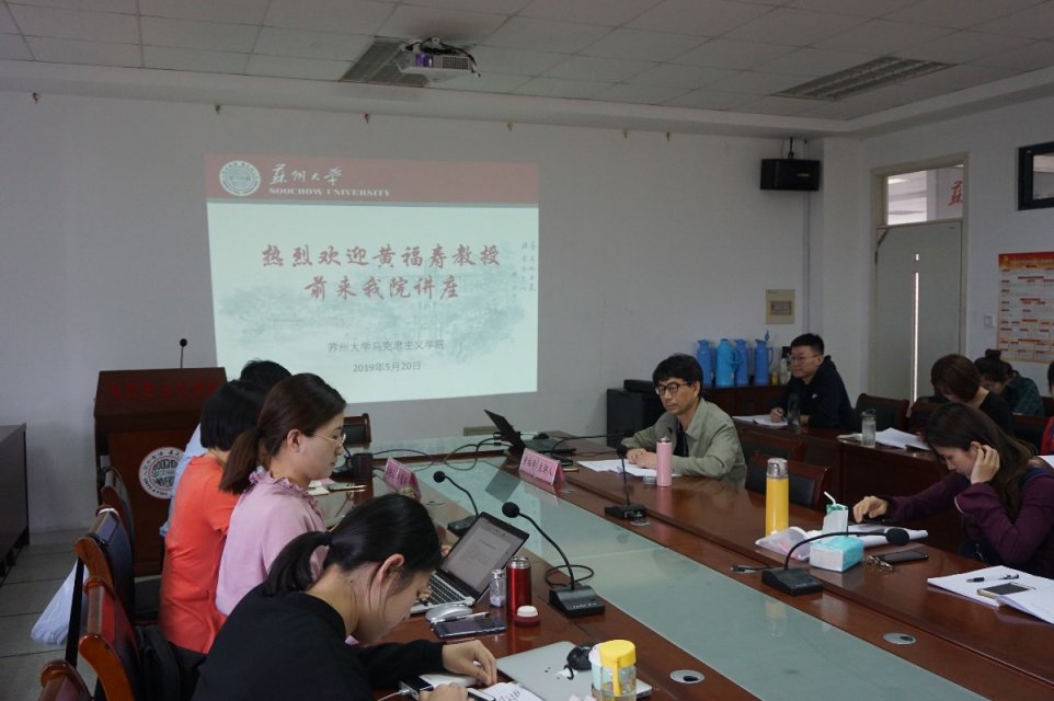 5月20日下午,上海科学社会主义学会副会长、中国辛亥革命研究会常务理事、民革中央理论研究和学习委员会副主任、中国统一战线理论研究会统战基础理论上海研究基地专家、上海师范大学马克思主义学院教授、博士生导师、博士后合作导师黄福寿教授应田芝健院长邀请于苏州大学独墅湖校区606号楼6418会议室作题为“论文选题·项目申报的若干问题思考”的指导讲座。本次活动由马克思主义学院主办,院党政综合办公室、院教学科研办公室、院团委、研究生党支部、研究生会承办。苏州大学马克思主义学院教师以及硕、博士研究生聆听了本次讲座。讲座由马克思主义学院副院长许冠亭教授主持。