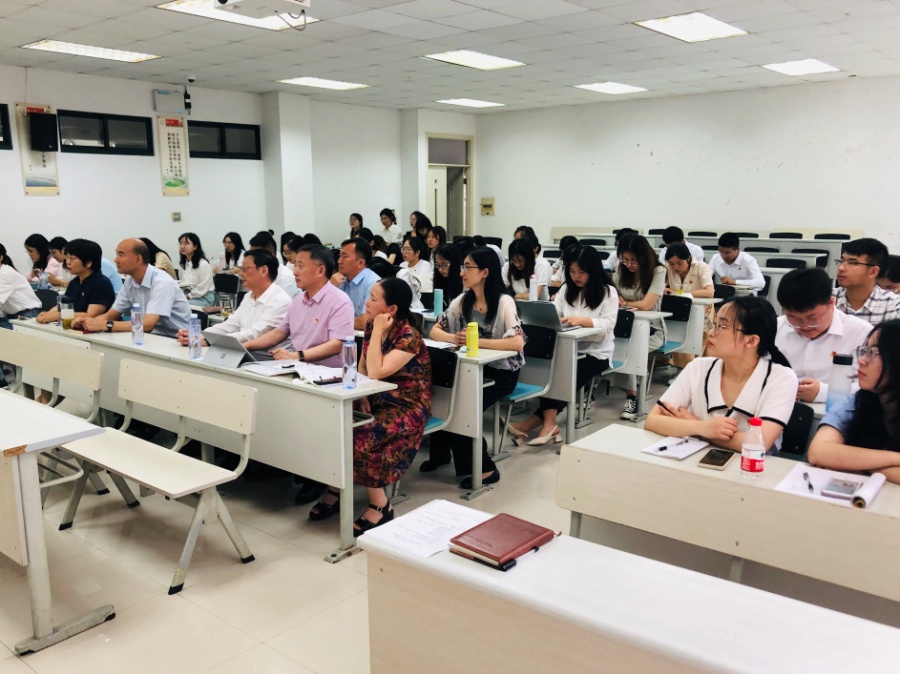 大会伊始,全体肃立,齐唱国歌。收看过程中,在场师生聚精会神地聆听习近平总书记的重要讲话,并认真地做着笔记。